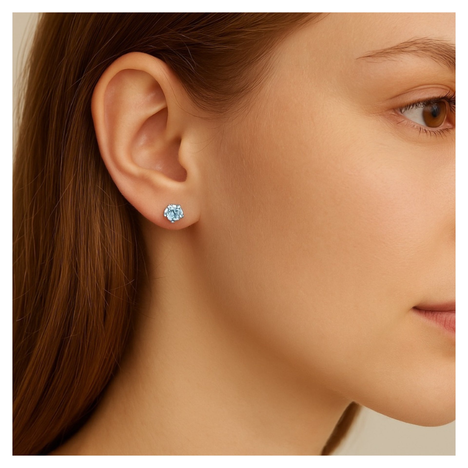 4mm light blue CZ flat back earrings in stainless steel. Hypoallergenic, tarnish-resistant, and comfortable for cartilage, helix, tragus, conch, or lobe piercings. Secure flat back studs perfect for everyday wear, sensitive ears, curated ear stacks, and minimalist jewelry style.