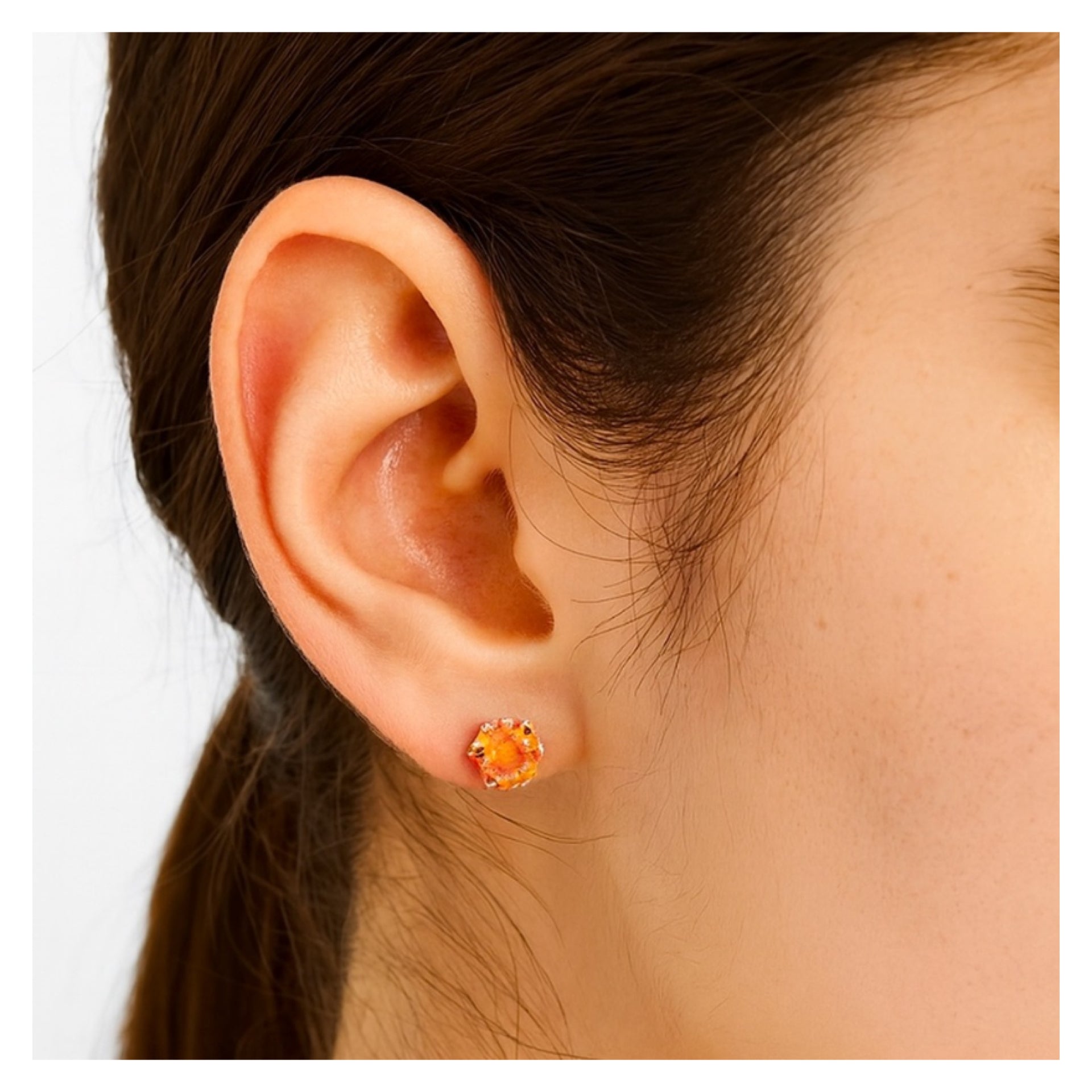 4mm orange CZ flat back earrings in hypoallergenic stainless steel. Perfect for cartilage, helix, tragus, conch, and lobe piercings. Comfortable, tarnish-resistant, and great for sensitive ears or curated ear stacks.