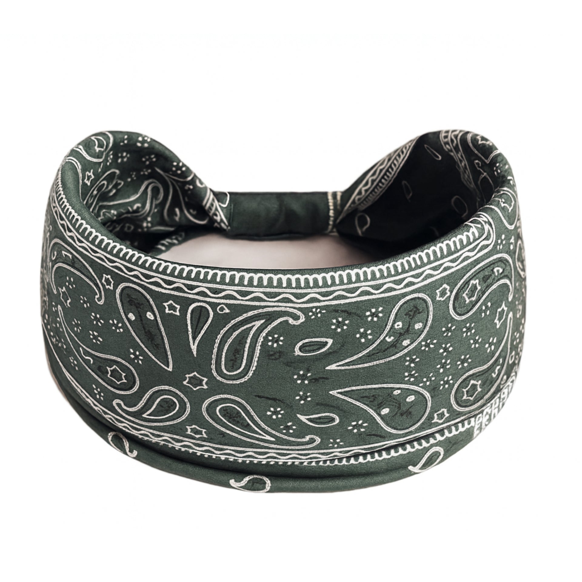 Dark Green Paisley Knot Headband – Wide Stretch Turban Style Hair Wrap