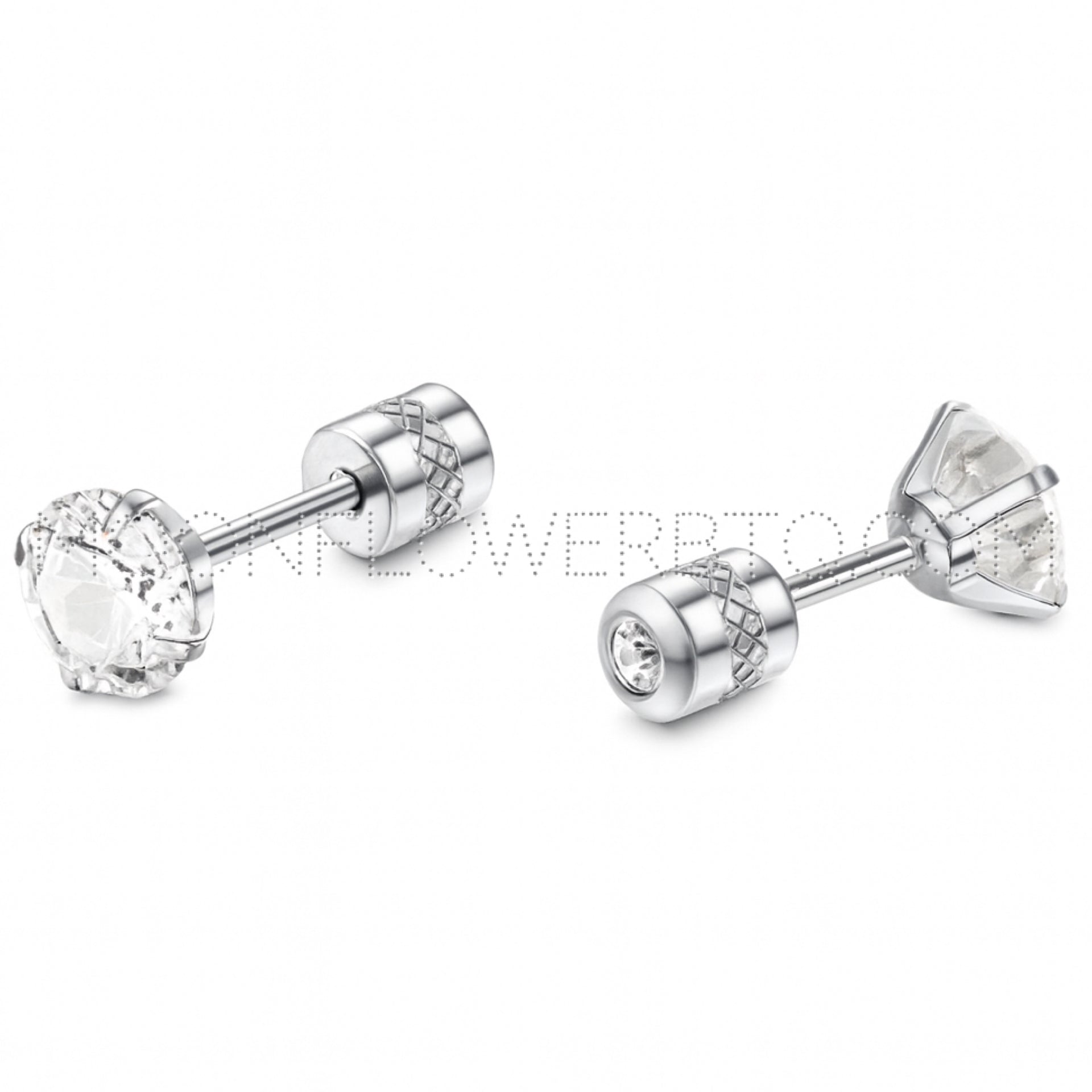 20G Stainless Steel Double Ended Earrings | 5mm Clear CZ Front with Small CZ Screw Back Studs