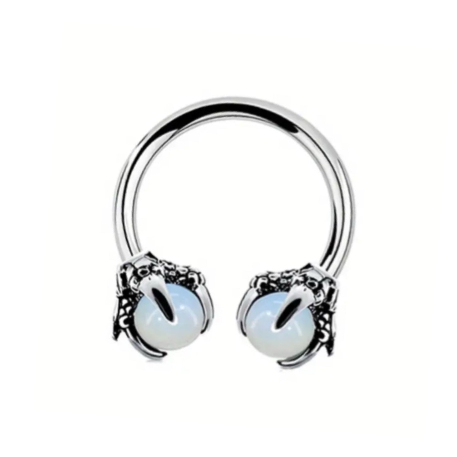 Dragon Claw Septum Ring | Stainless Steel Opalite Hoop | 16G 10mm Gothic Piercing Jewelry