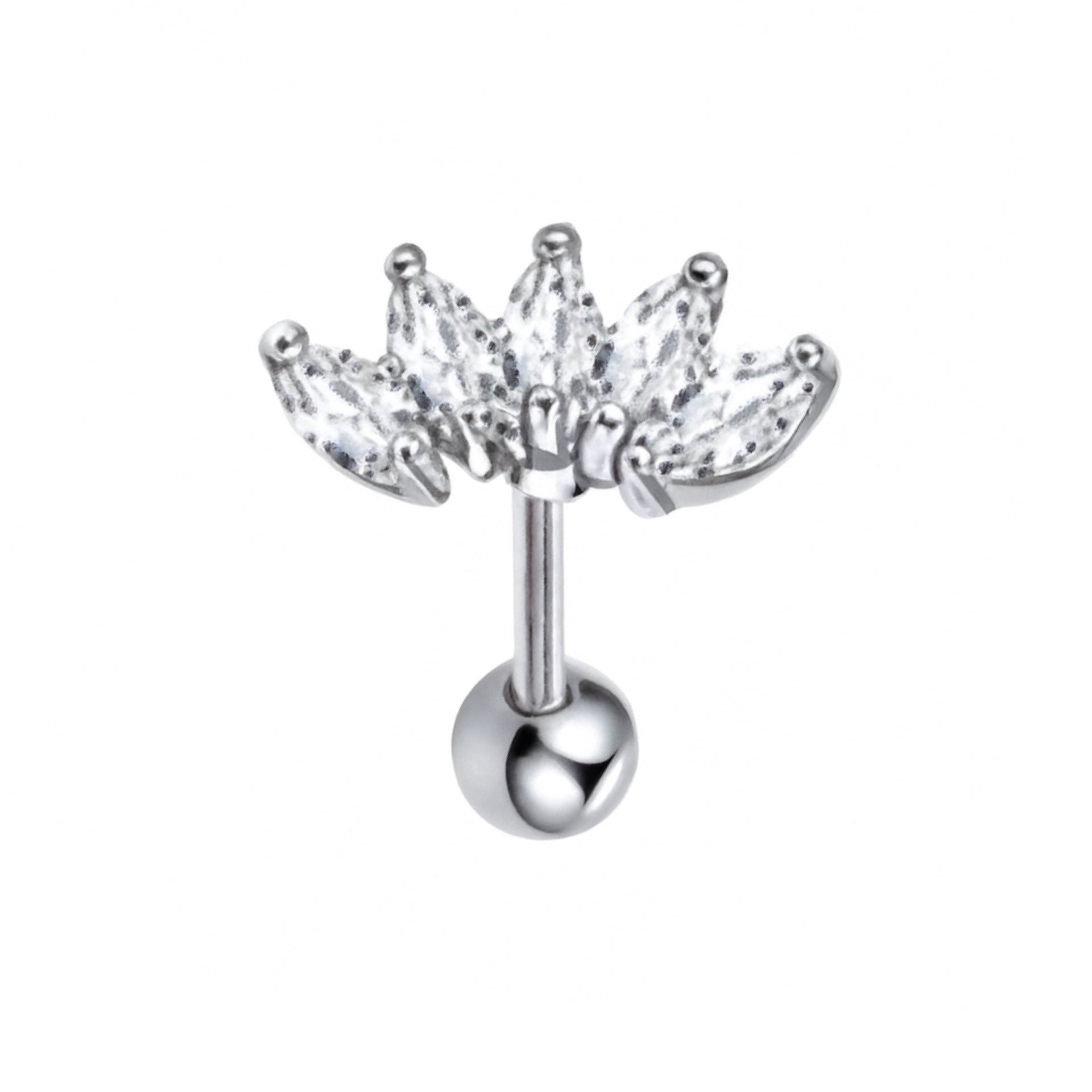 16G Lotus Flower CZ Barbell – Stainless Steel Hypoallergenic Cartilage Stud