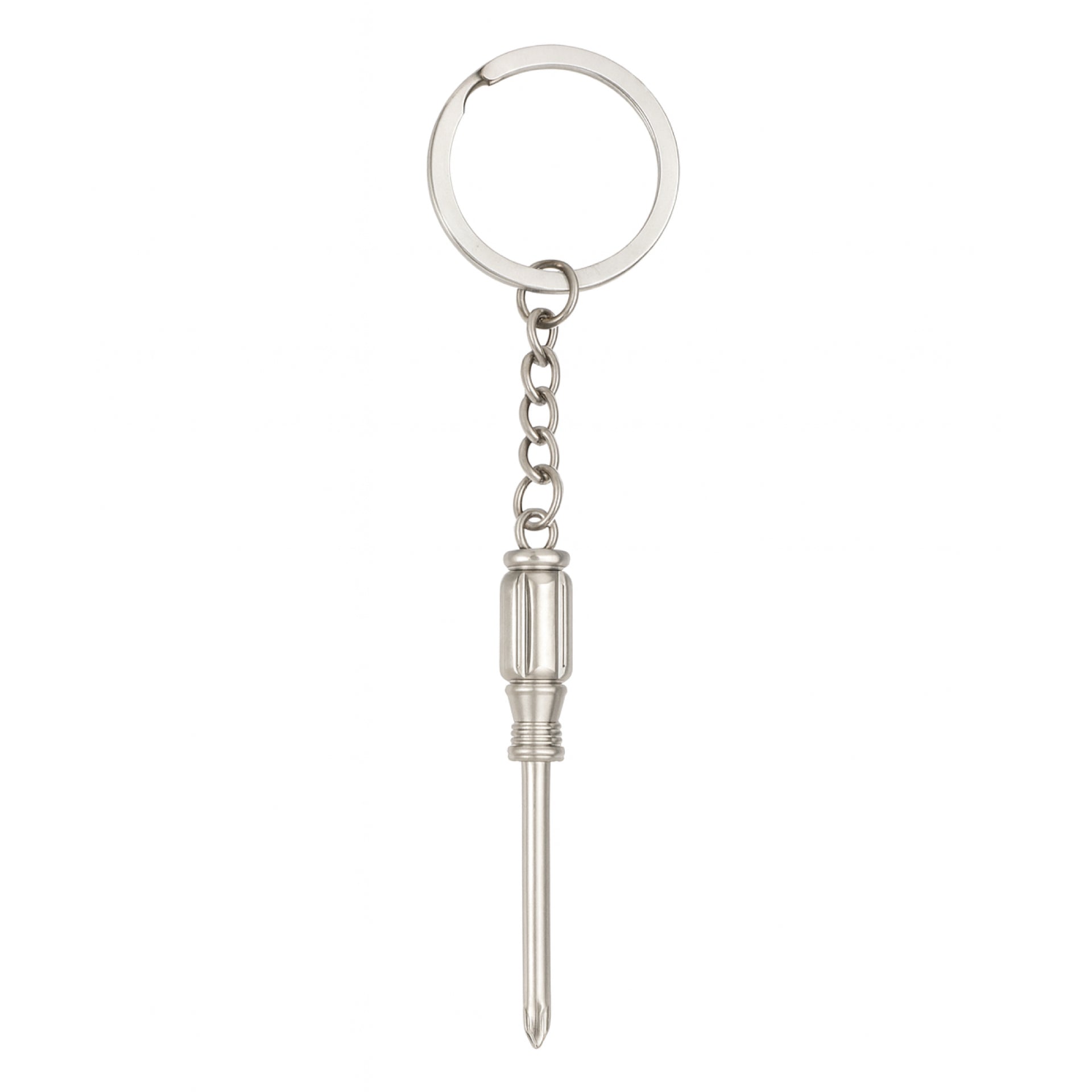 Durable stainless steel screwdriver keychain with mini tool pendant design. Compact, lightweight, and functional accessory for everyday carry or gifts.