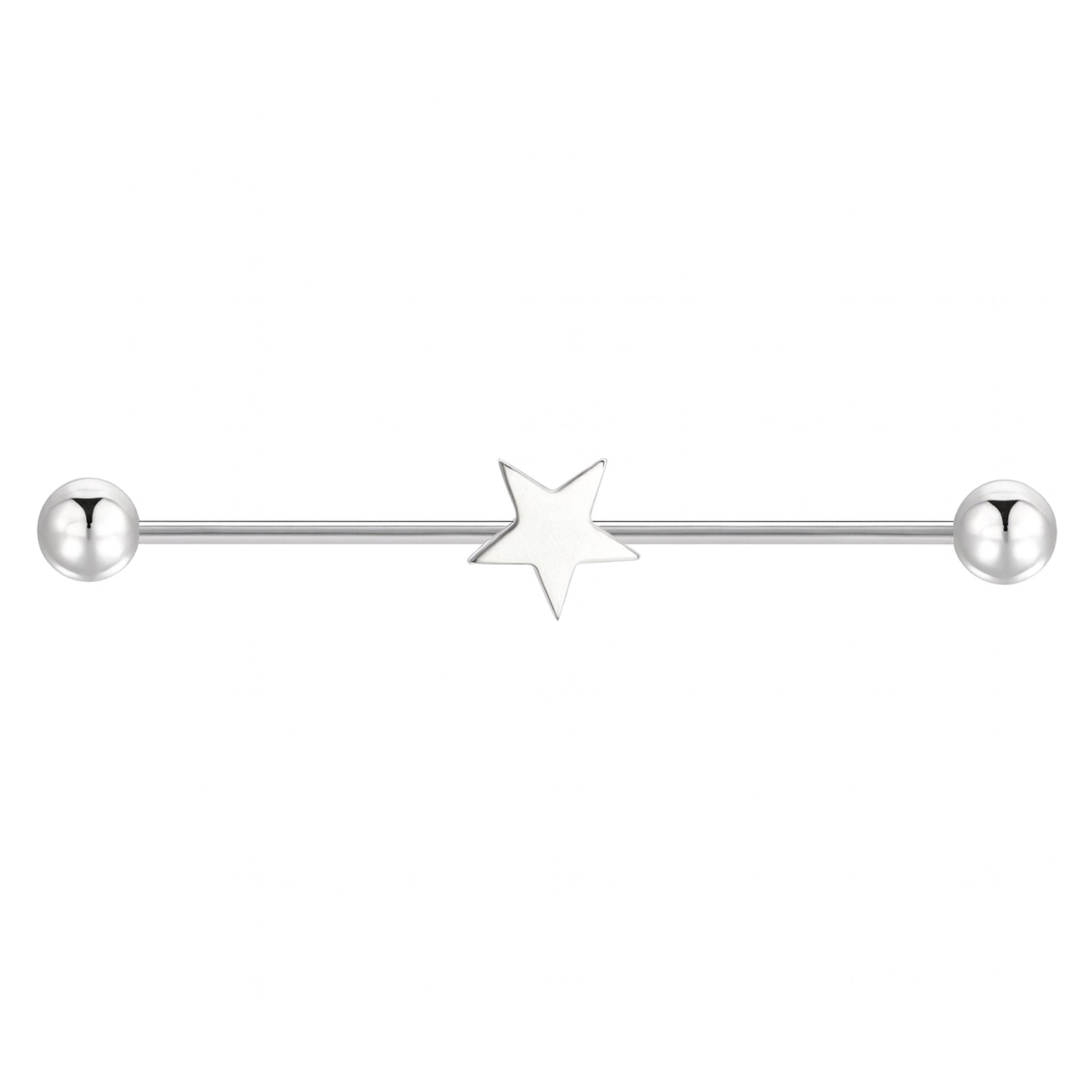 Add bold style with this Star Industrial Barbell Earring, crafted in durable 14G stainless steel for long-lasting wear. Featuring a sleek straight bar with a striking star centerpiece, this industrial piercing is perfect for cartilage and scaffold piercings. Hypoallergenic, tarnish-resistant, and easy to style.
