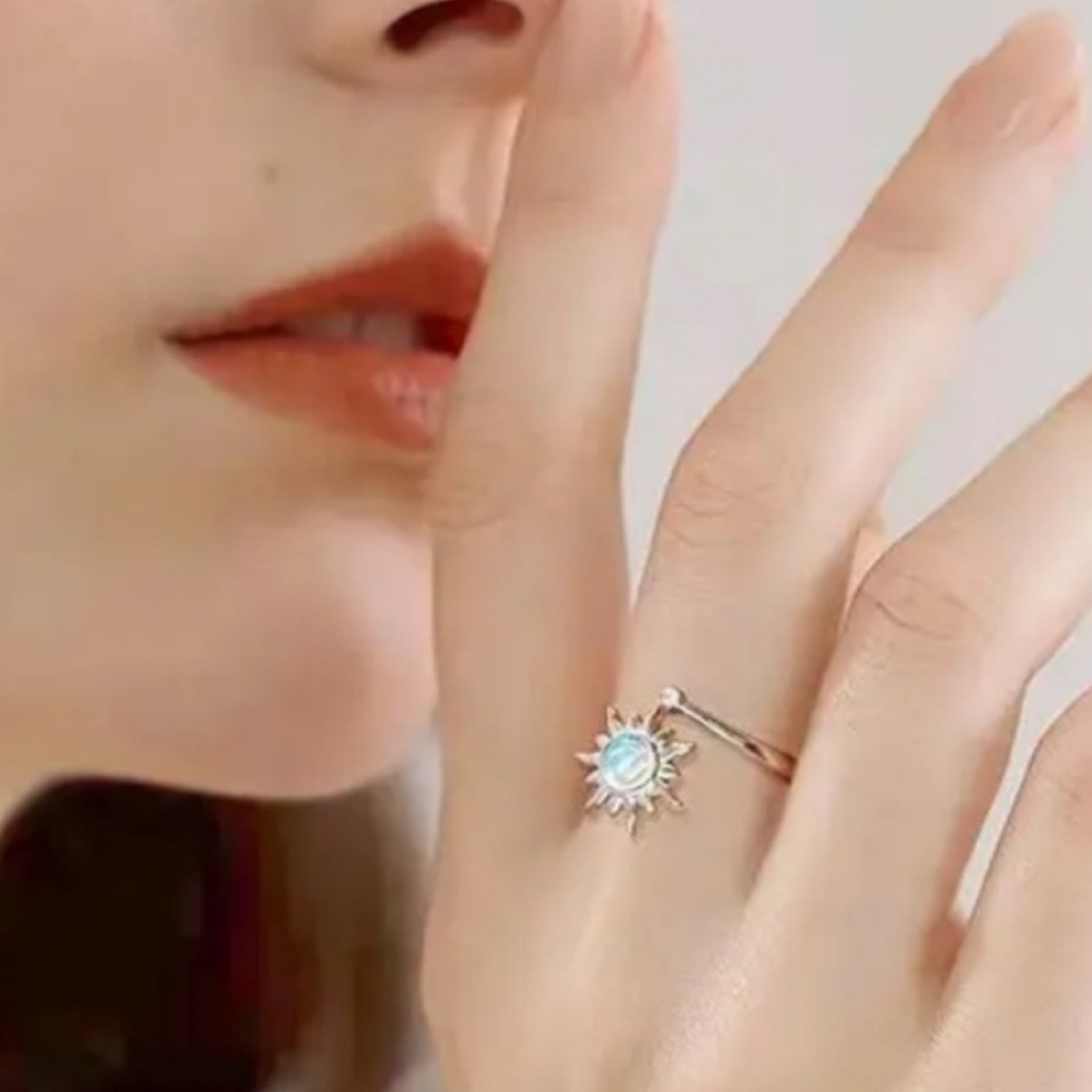 Sun Moonstone Spinner Fidget Ring – Adjustable Stainless Steel Hypoallergenic