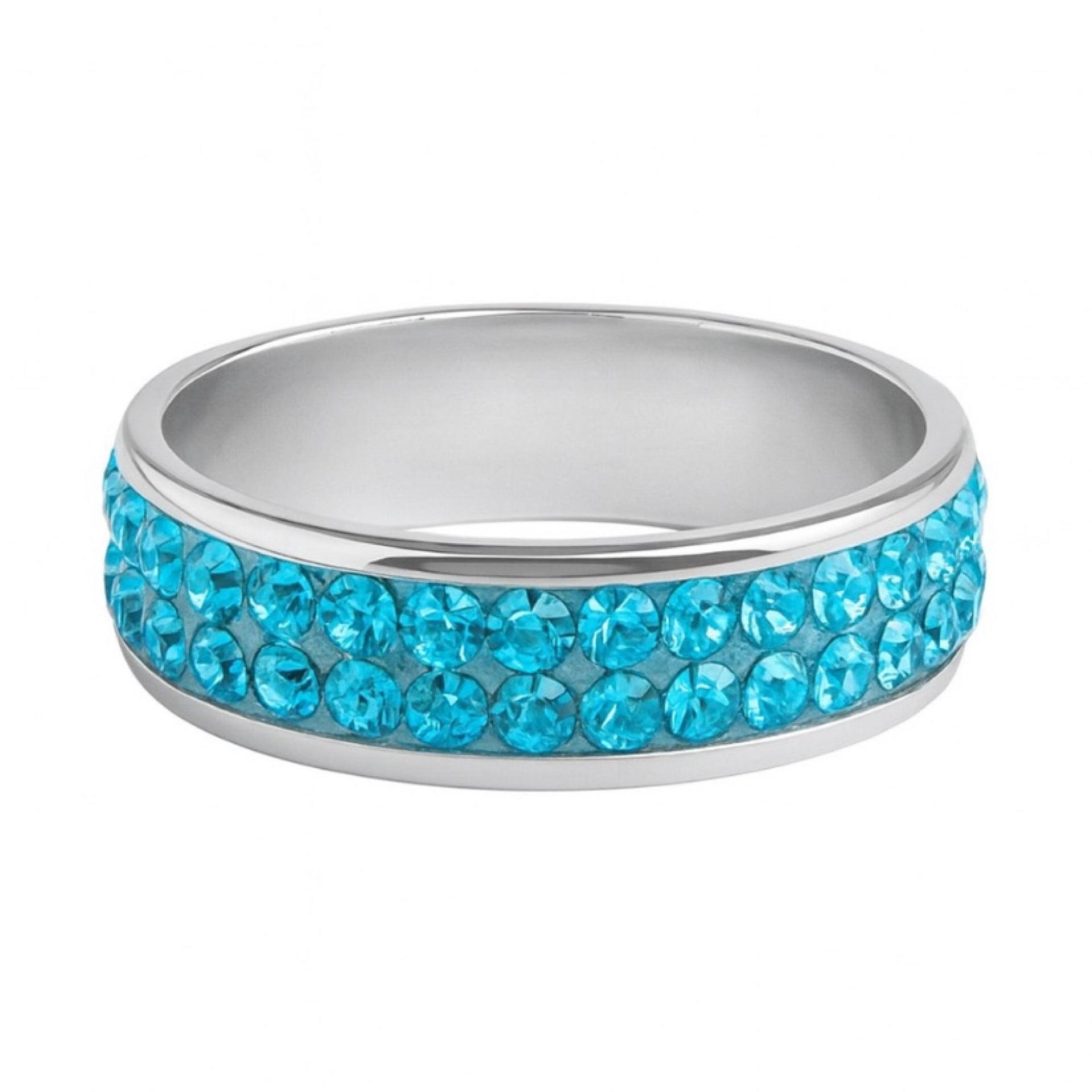 Sparkly Aqua Blue Crystal Eternity Band Ring | Stainless Steel | Hypoallergenic