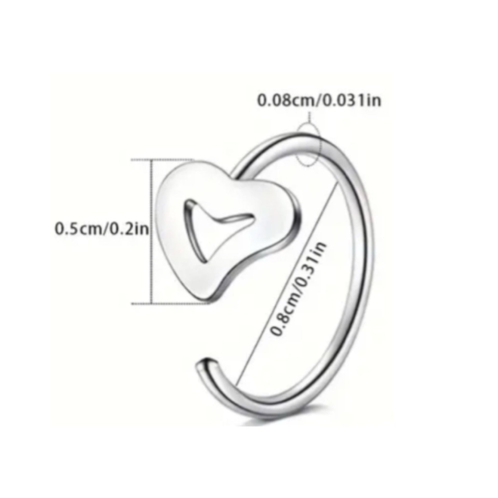 Heart Nose Hoop Ring 20G Stainless Steel – Silver Tone Cartilage & Nostril Jewelry